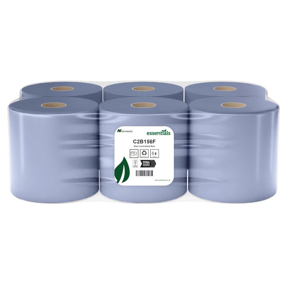 Key Features for the 2 Ply Centrefeed Blue Roll 6 Pack: