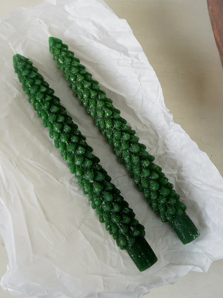 Create a cosy festive atmosphere with our emerald christmas tree dinner candles. A set of two, beautifully designed for timeless Christmas styling. These tall candles feature a subtle snowy dusting, giving them an elegant seasonal touch while keeping a classic, understated look. Perfect for those searching for Christmas candles, they bring warmth and charm to dining tables, sideboards, or styled festive displays.
